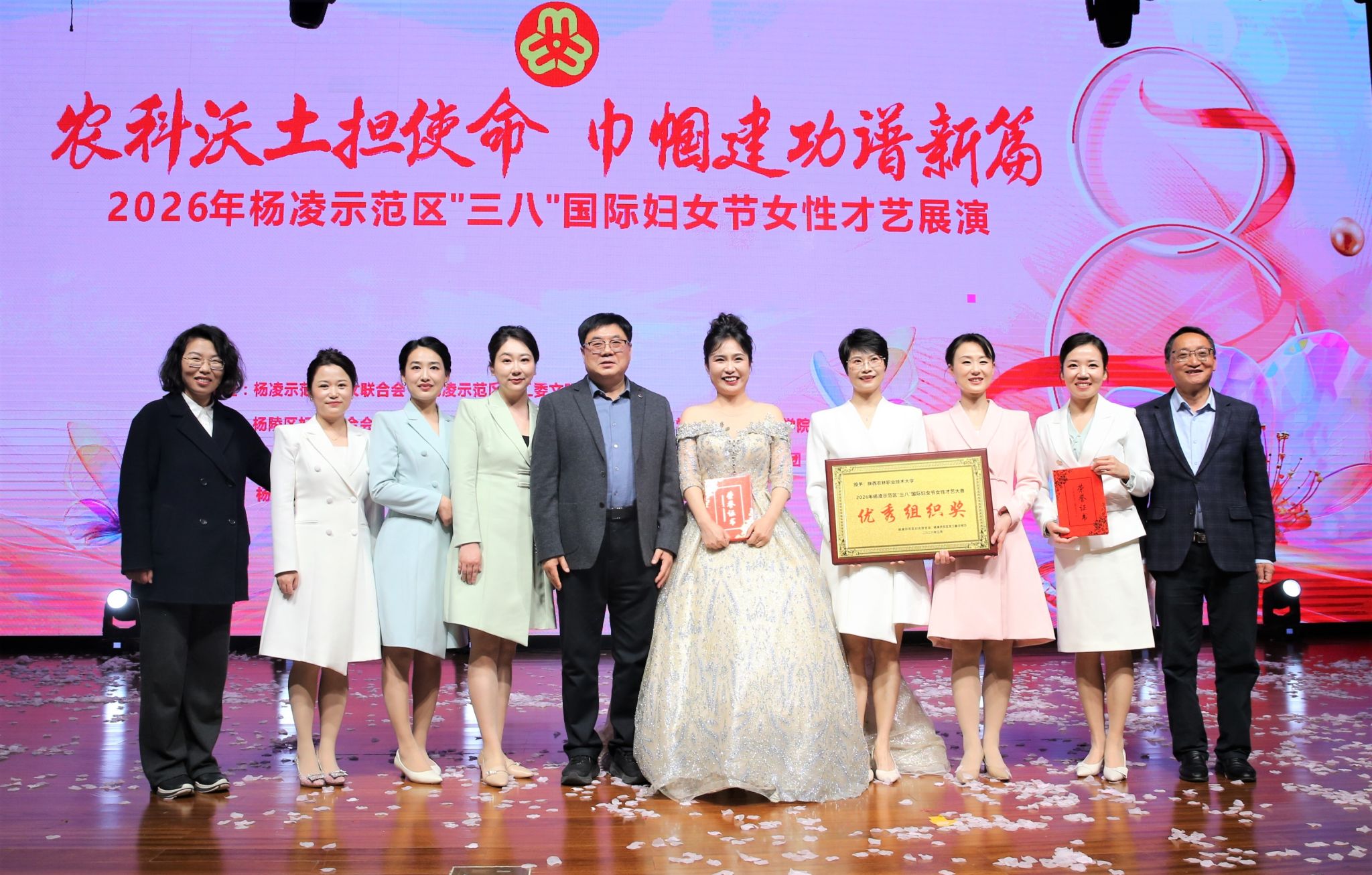 3月5日,我校女职工在杨凌示范区妇联举办的“三八”妇女节“巾帼展才艺 逐梦绽芳华”女性才艺大赛中获得佳绩。校党委副书记刘瑞明出席活动并颁奖。
